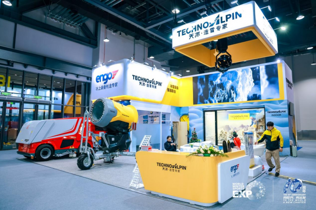 本届冬博会总面积近2万平米,现场设置冬季及高山技术、国家组团展区、国内冰雪经济集聚区、冬季旅游目的地、冰雪个人装备、冰雪院校及产业服务、旅游景区装备、冰雪文化及赛事展览展示区域。意大利天冰、奥地利Axess集团、Radskier、斯洛文尼亚雪伊兰、挪威特模森、日本安比国际度假村、西武王子酒店及度假村、加拿大时曼、深圳申沪冰雪、威海酷动极限、北京卡宾、华冰/世纪星、雪族体育、iLab,从造雪技术、冰雪运动装备、场馆设施到旅游服务,展商覆盖上游装备制造、中游场馆建设与运营、下游旅游服务及终端消费等各环节,全面呈现冰雪产业的最新成果。展会展出多项冰雪领域的前沿技术与创新产品,奥地利多贝玛亚索道集团、Sunkid、WINTERSTEIGER AG、意大利Neveplast、美国埃尔普、Microgate、加拿大Taiga、美国airkipp、启功,涵盖索道、计时系统、旱雪材料、无板滑雪、及雪场设备等关键领域,展现冰雪运动背后的科技支撑。场景应用方面,富港万嘉智能烹饪设备、无人机技术等创新成果在景区与雪场服务中实现融合应用。此外,恒源喷泉、清华同方展示了景区应用的综合性视听艺术,为冰雪文旅项目提供了沉浸式体验解决方案。